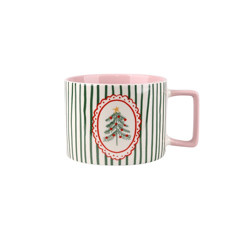 Classic Color Palette: The set features mugs in red, green, and pink—traditional Christmas hues—that complement any cozy holiday decor style.