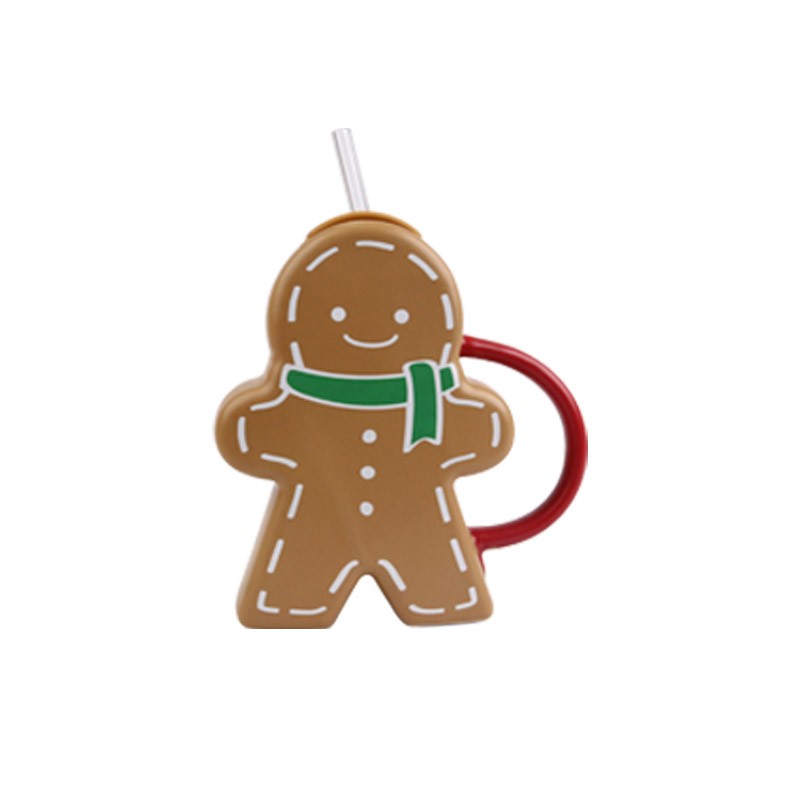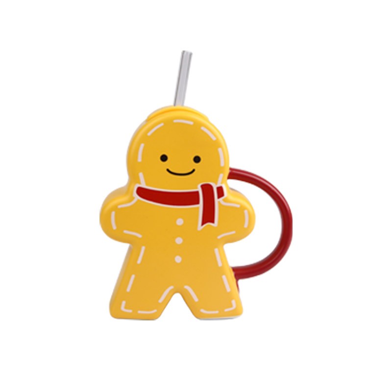 550ml Christmas Gingerbread Man Shaped Ceramic Mugs with Straw