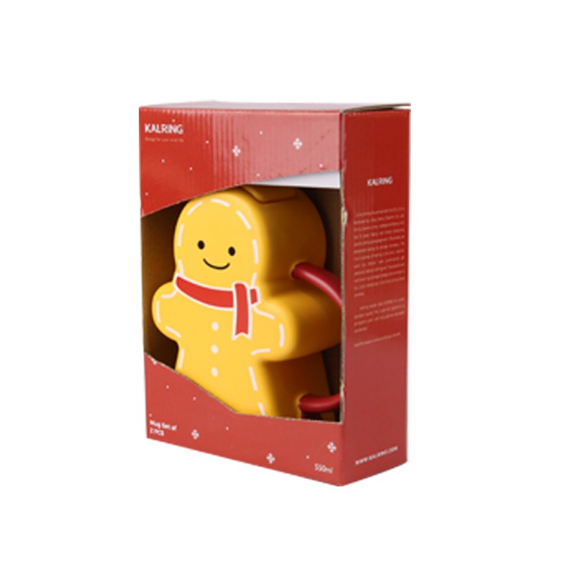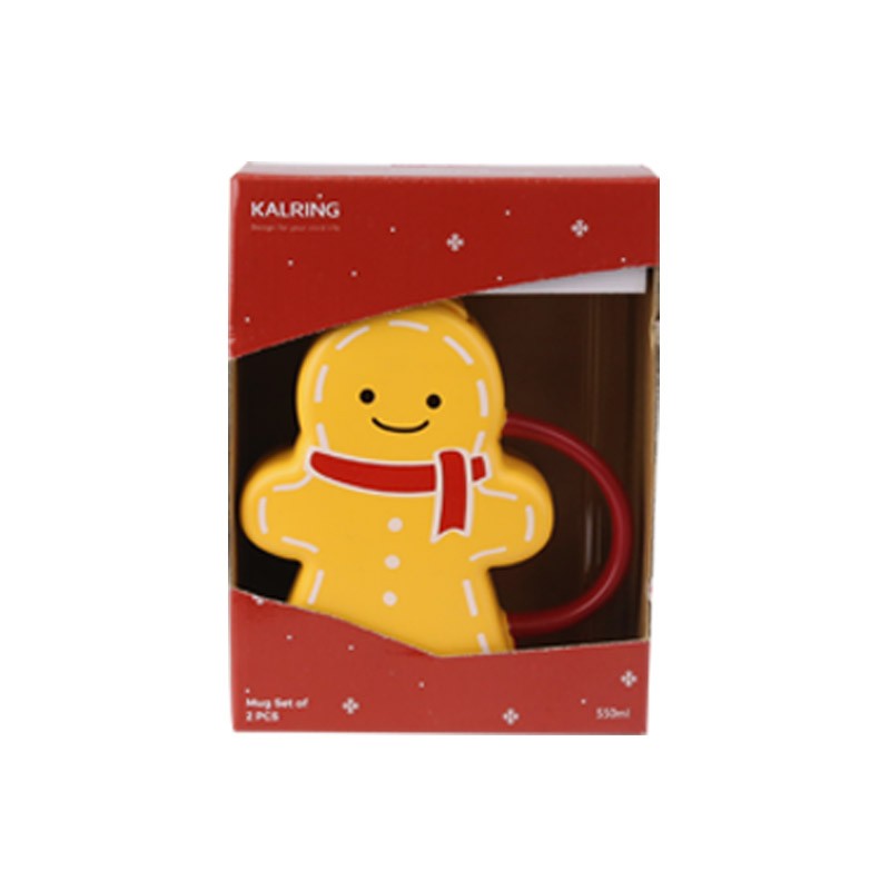 Charming Gingerbread Man Design: Each mug (dimensions: L120mm x H158mm, 550ml capacity) is shaped like a cute gingerbread man, complete with a smiling face and scarf details. The brown and yellow color options add variety and fun to your holiday drinkware.
