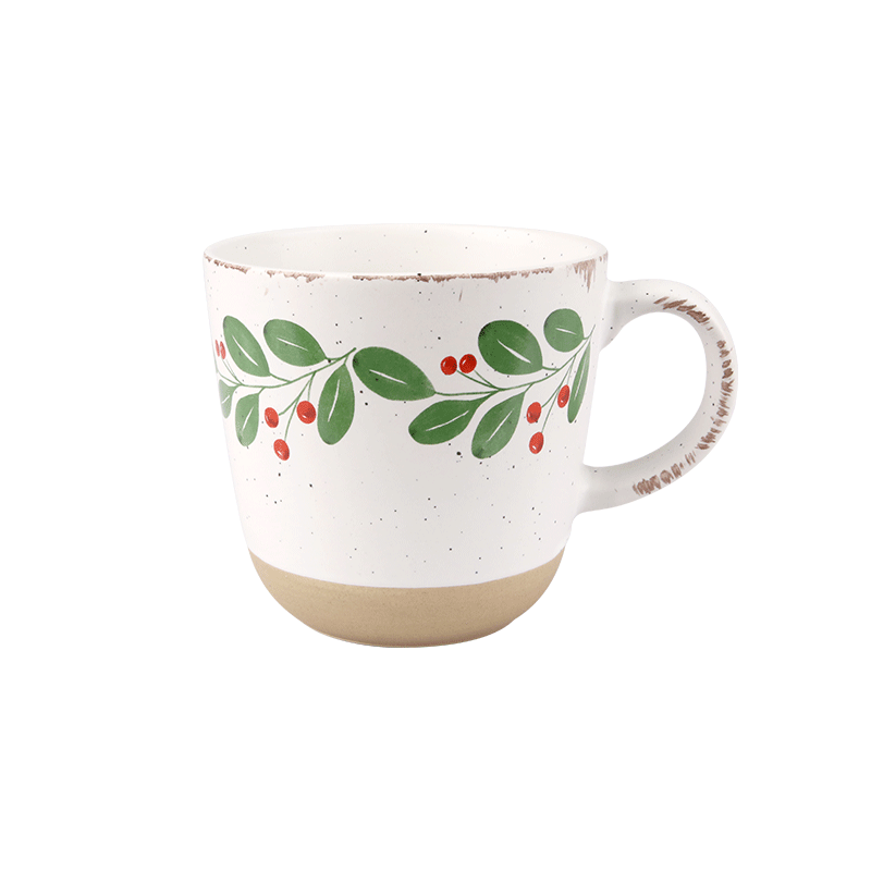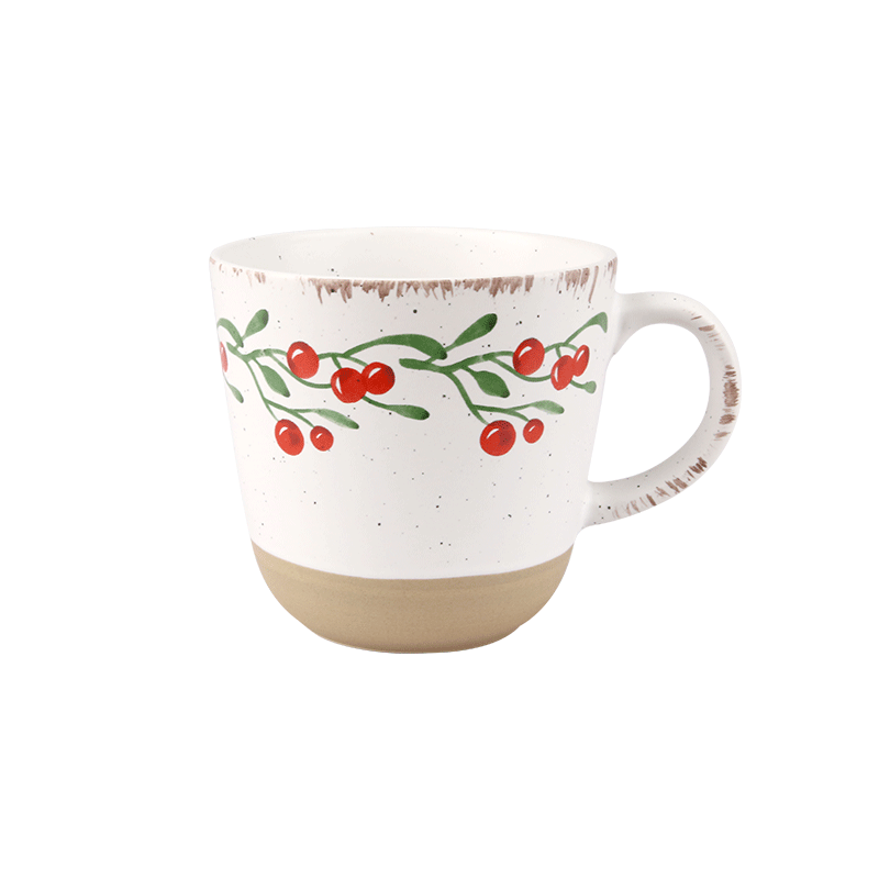 Christmas Berry & Leaf Ceramic Mugs, Festive 400ml Drinkware for Hot Beverages