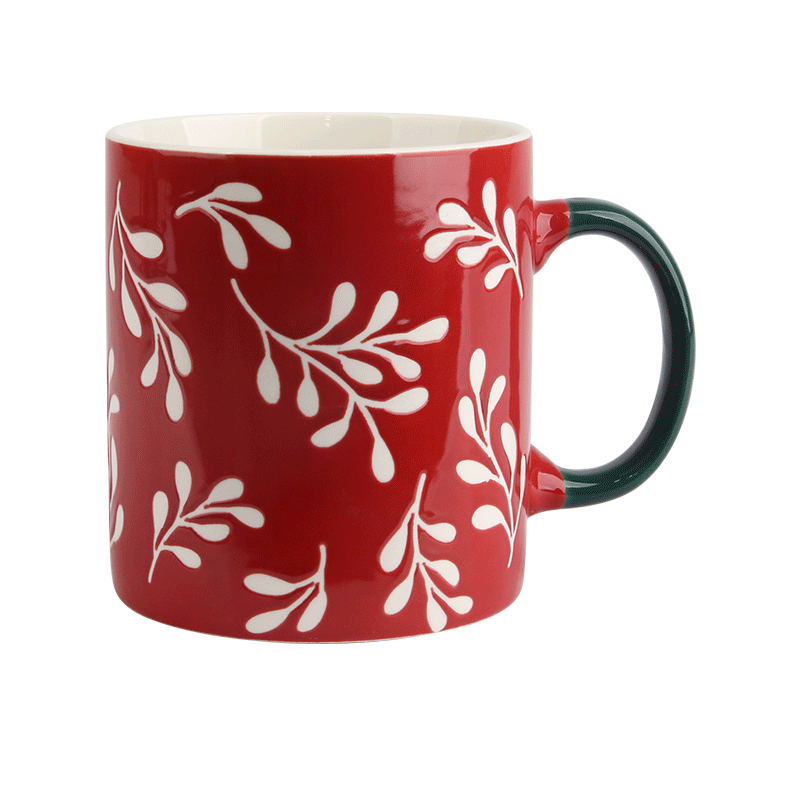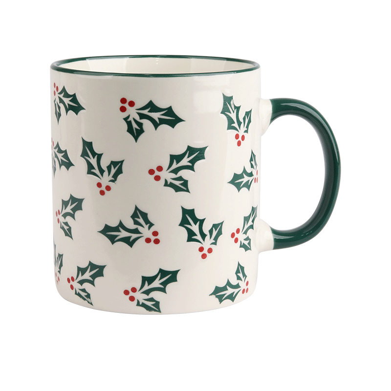 Christmas Botanical Ceramic Mugs, Festive 480ml Drinkware for Hot Beverages