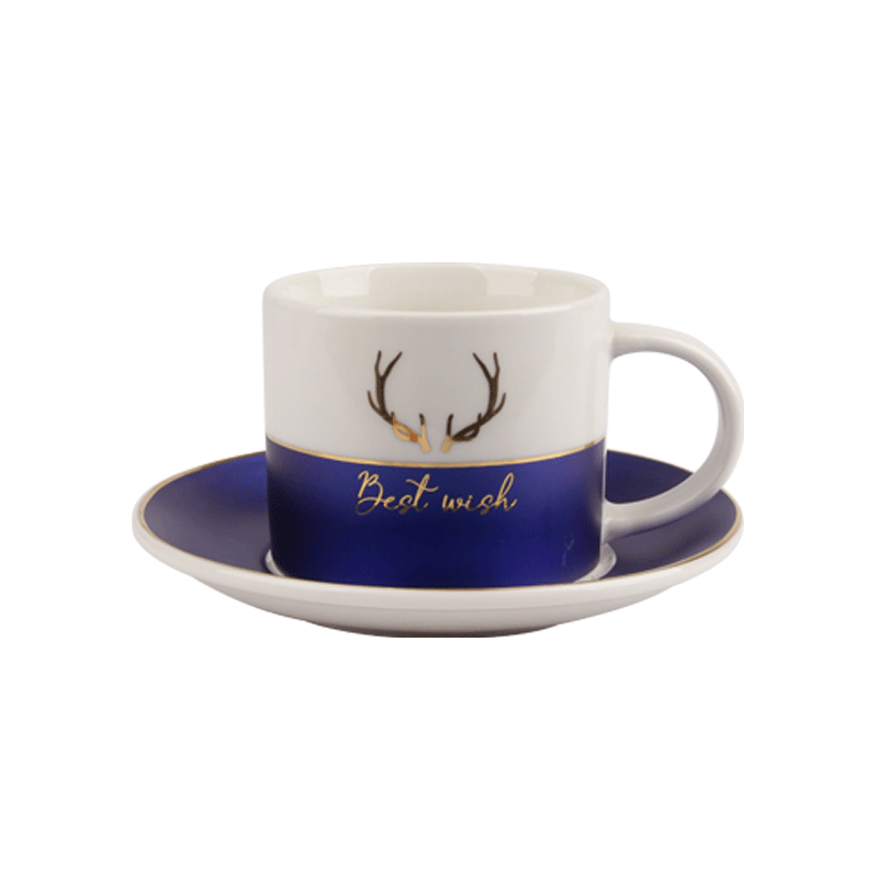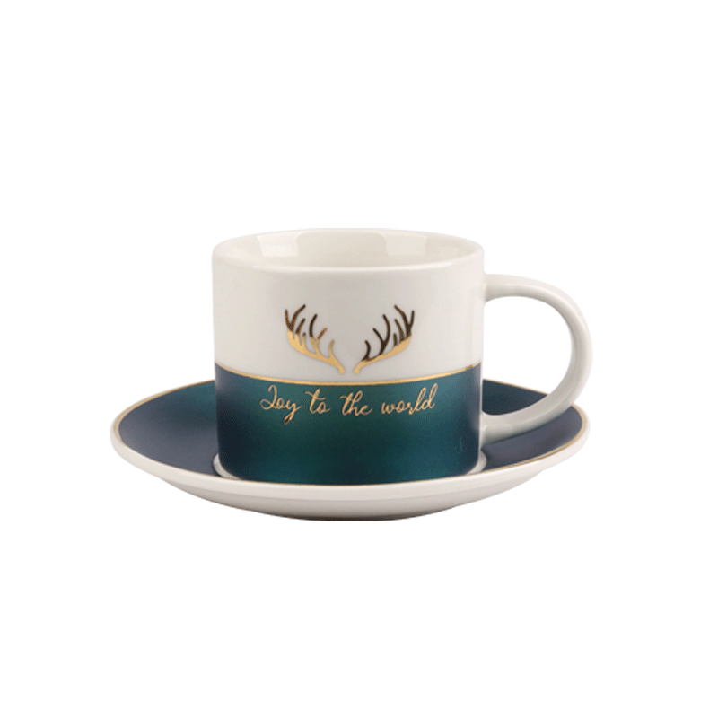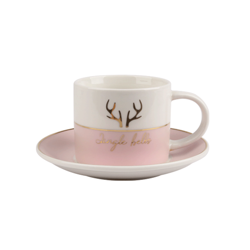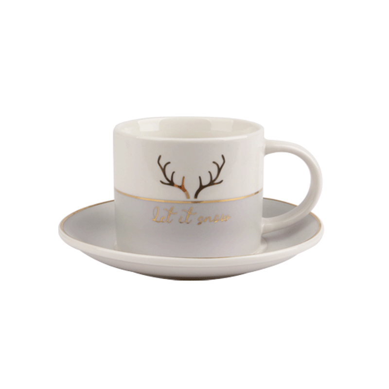 Christmas Ceramic Cup and Saucer Sets with Antler Designs, 250ml Set of 4, Elegant Drinkware