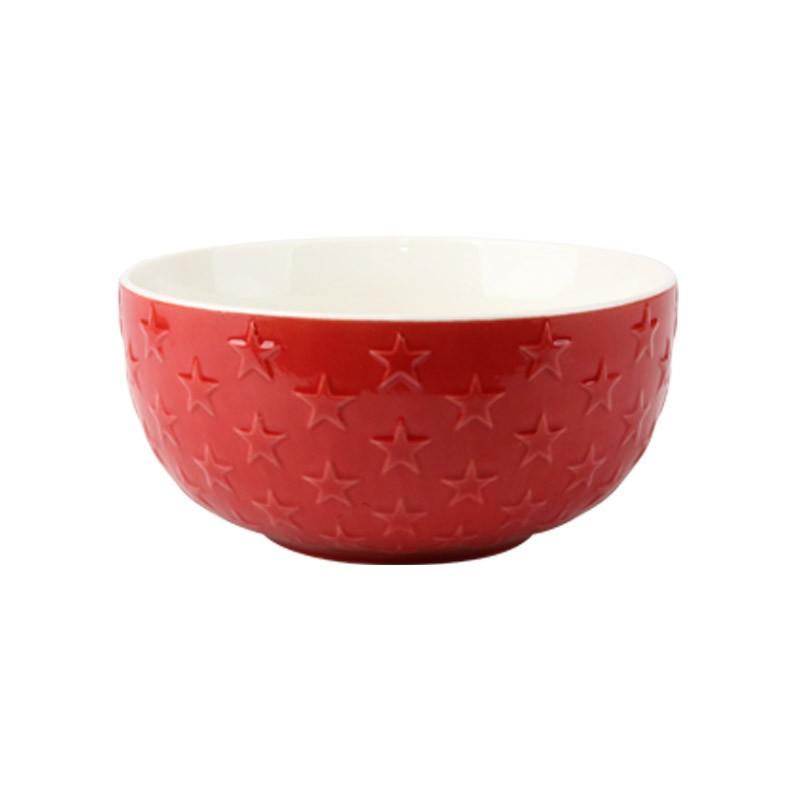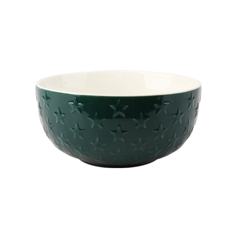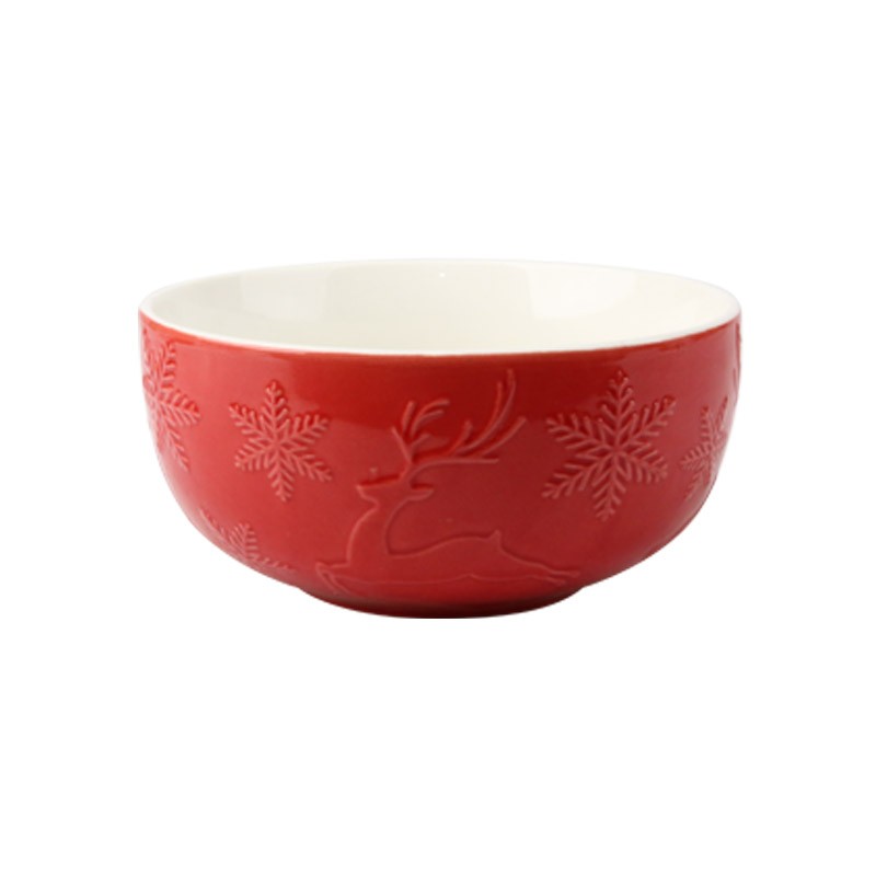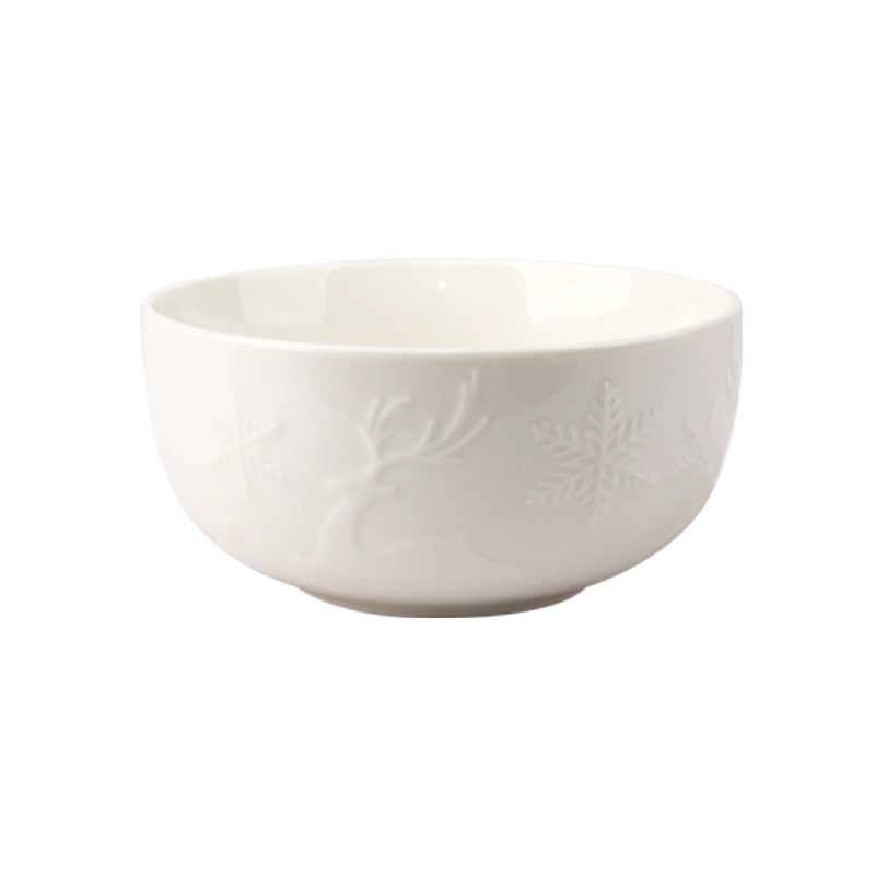 Christmas Embossed Ceramic Bowls Set - 4-Piece 55oz Reindeer & Snowflake Design, Festive Dinnerware