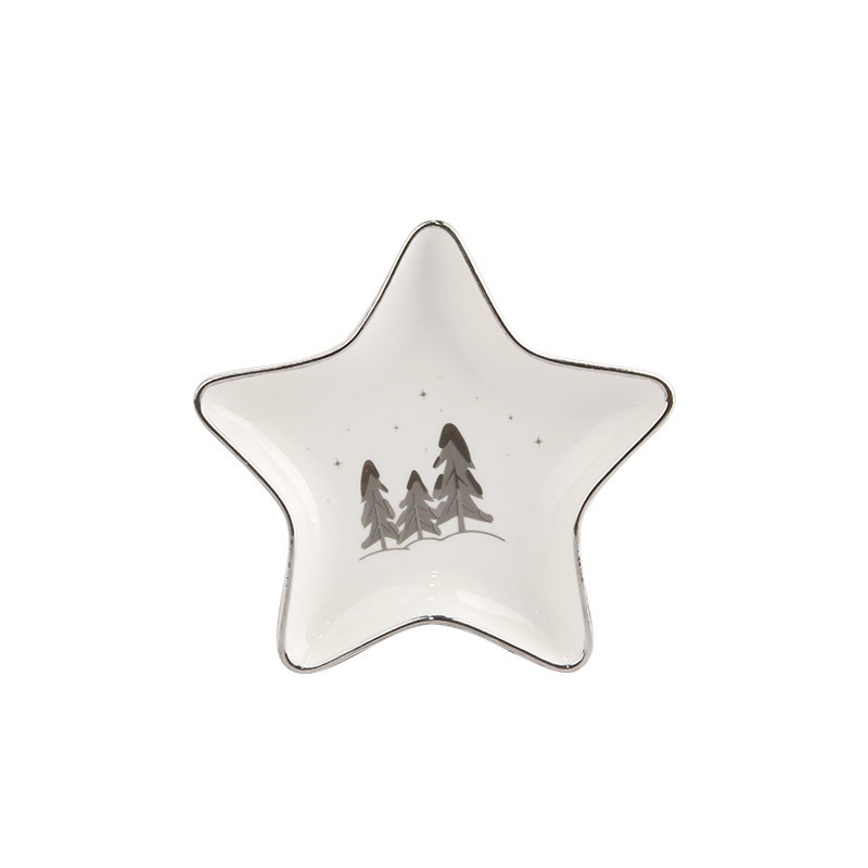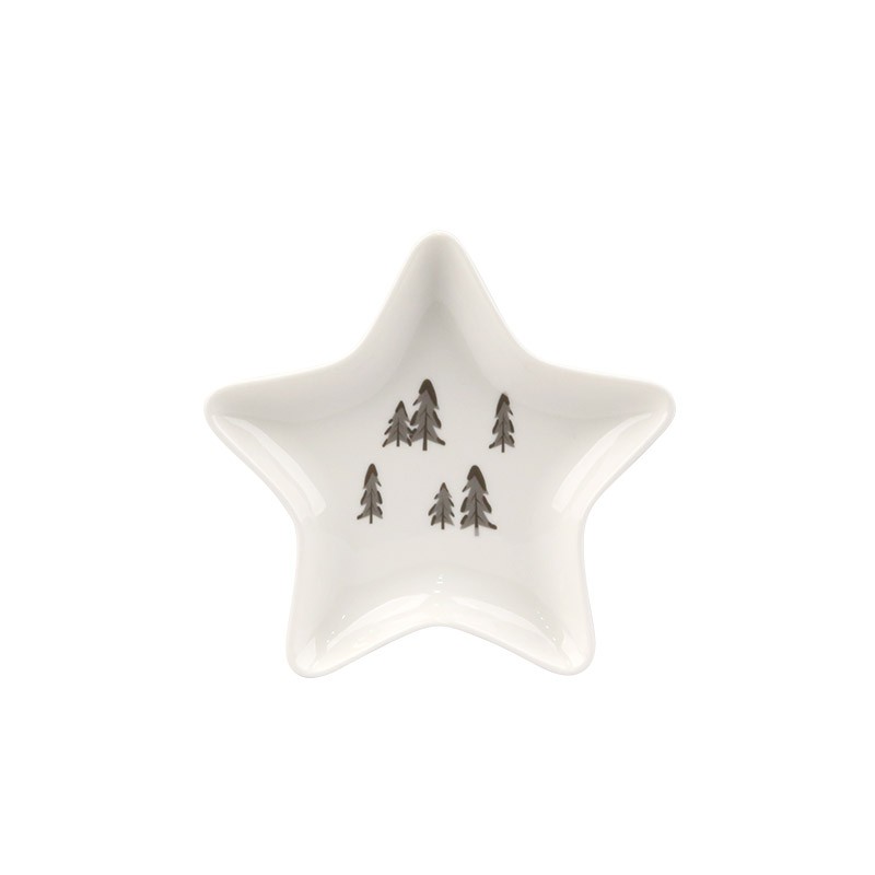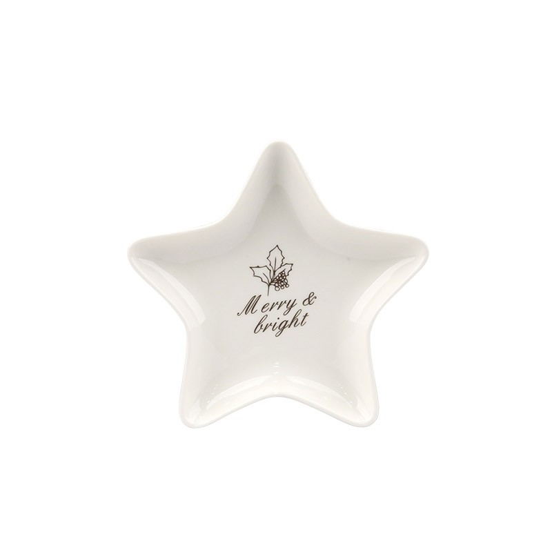 Festive Star - Shaped Designs: Each dish (dimensions: L136mm x W130mm x H15mm) boasts a unique Christmas theme. From clusters of Christmas trees to cheerful “Merry & Bright” and “jolly” messages, snowy speckles, a star with snowflake accents, and a serene forest scene, these dishes capture the magic of the season.