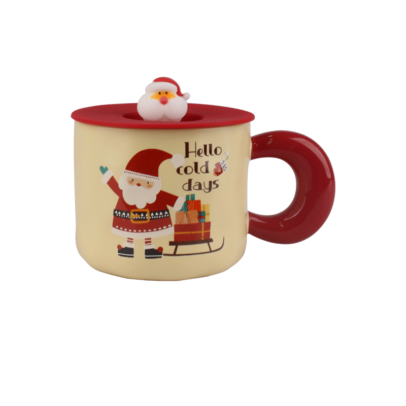 Christmas - Themed Ceramic Mugs with Decorative Lids, Festive 420ml Drinkware