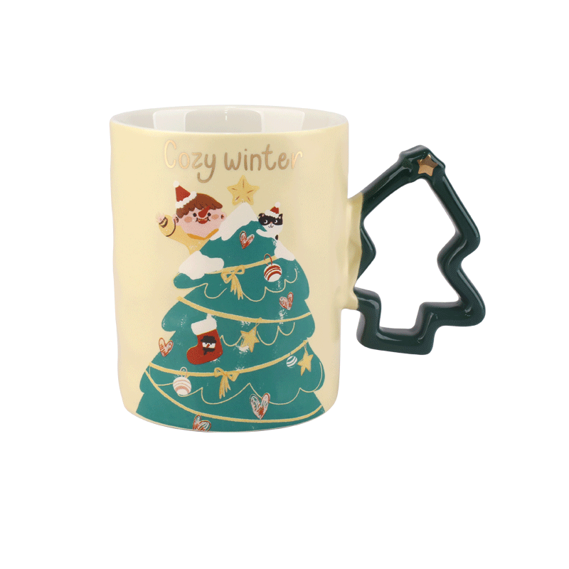 Christmas - Themed Ceramic Mugs with Tree - Shaped Handles, Festive 380ml Drinkware