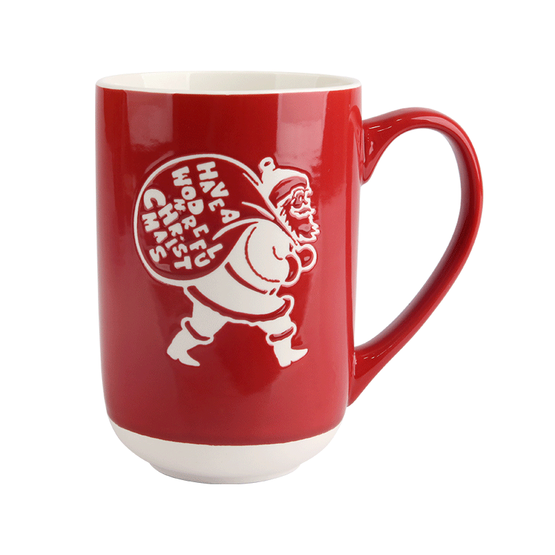 Festive & Functional Drinkware: Ideal for serving hot cocoa, coffee, tea, or other warm beverages during the Christmas season. The printed Christmas elements like Santa Claus, a Christmas tree, a gnome, and reindeer with festive text add a unique, holiday charm to your kitchen or dining table.