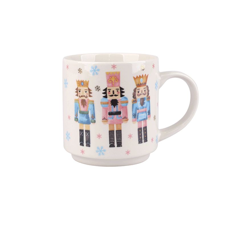 Nutcracker Stackable Ceramic Mugs, Set of 4, 330ml Christmas Themed Coffee Tea Cups with Handle,