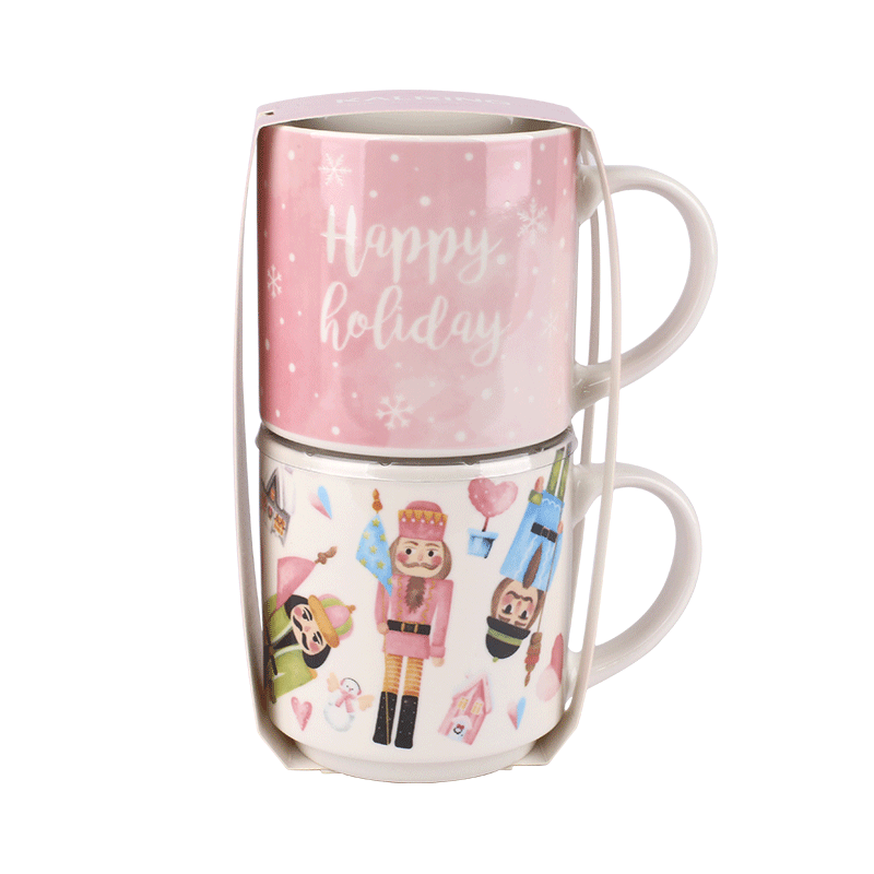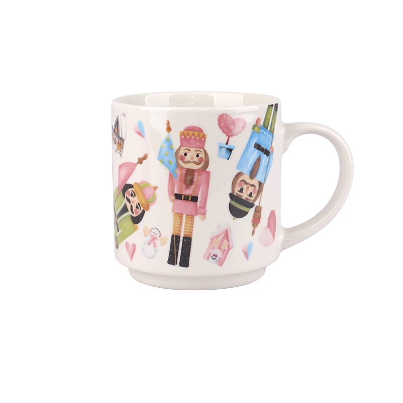 Set of 4 Stackable Christmas Ceramic Mugs, Festive 320ml Drinkware with Nutcracker & Holiday Designs