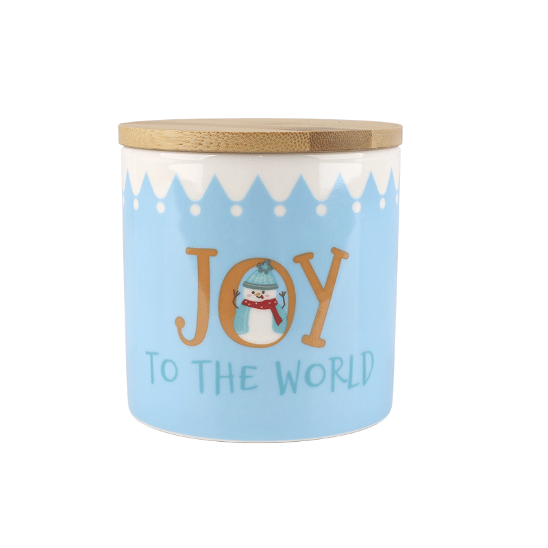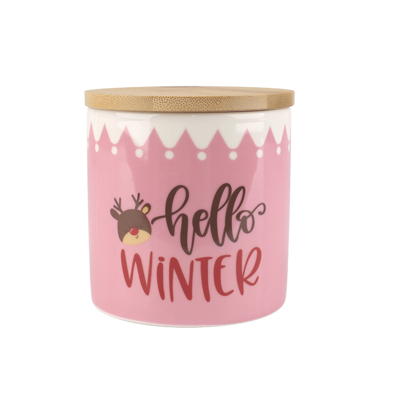 Winter - Themed Ceramic Storage Jars with Wooden Lids, 500ml Kitchen Canisters for Dry Goods